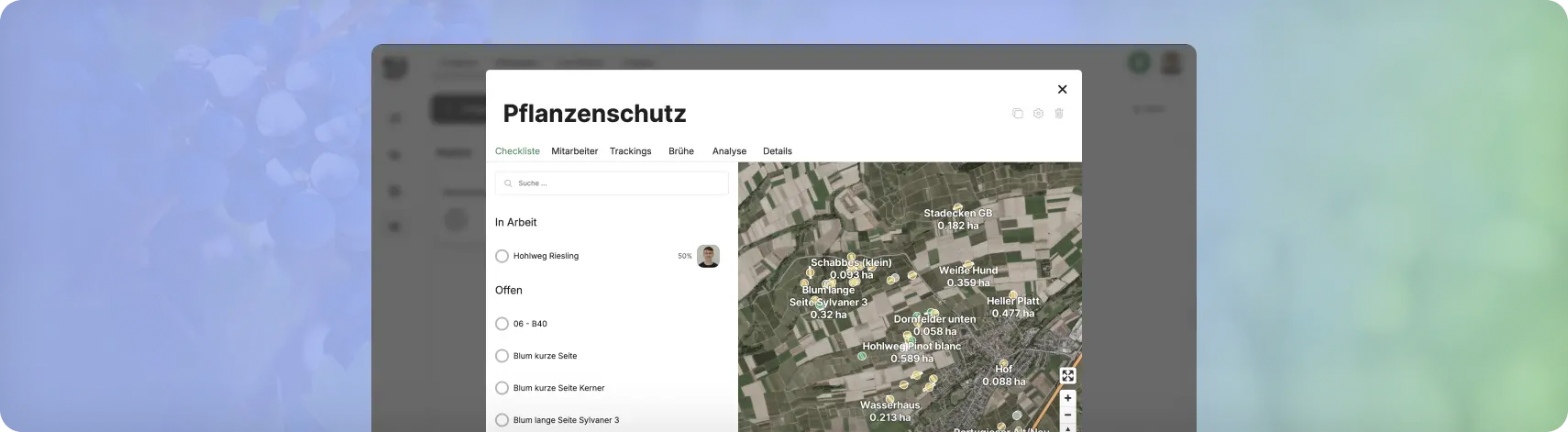 Verfolge Aufgaben, Fortschritte und Verantwortlichkeiten in Echtzeit – egal ob im Büro, im Weinberg oder unterwegs.